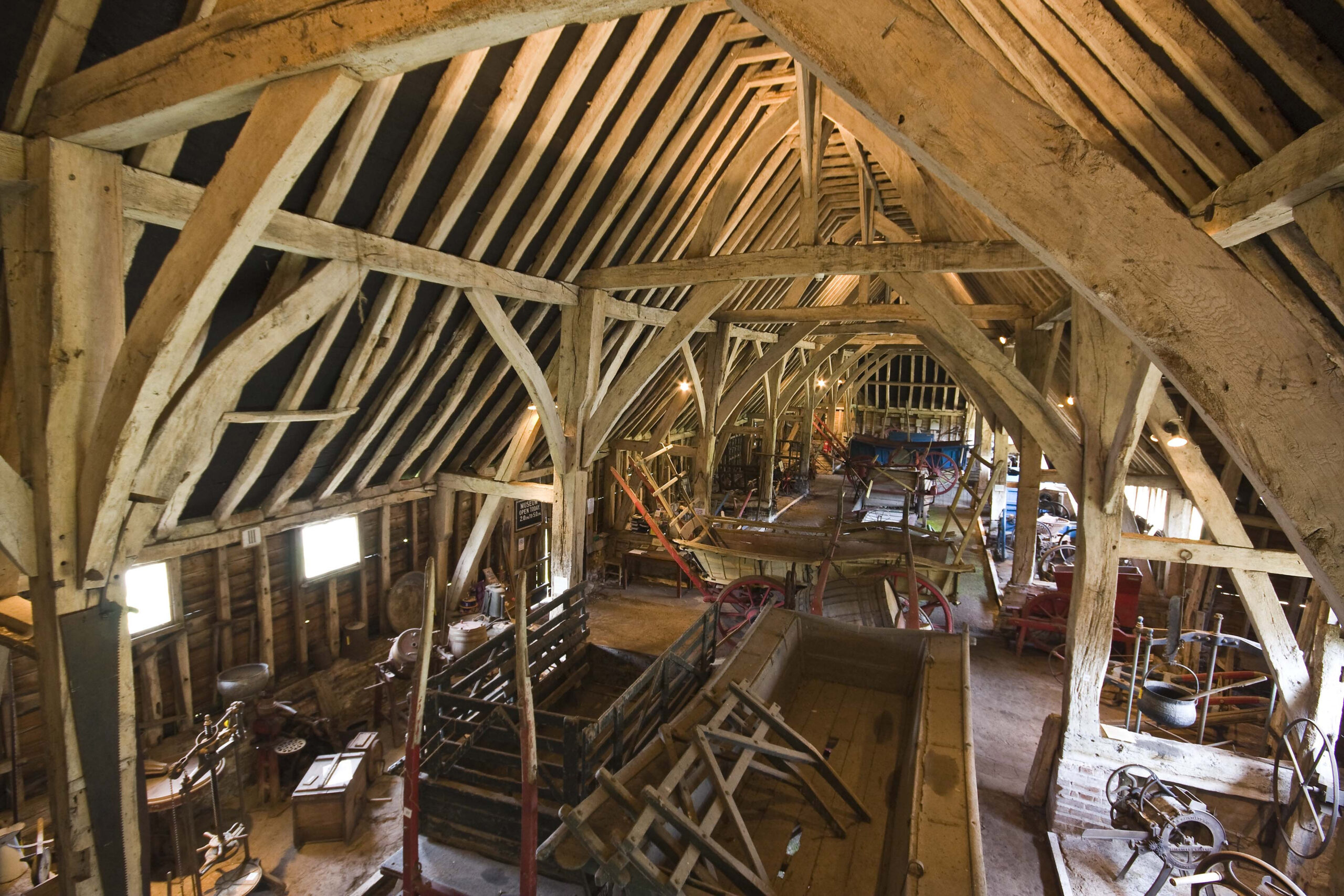 Brook Rural Museum sits at the foot of the North Downs’ iconic Devil’s Kneading Trough and preserves over 700 years of history. Housed in a magnificent 14th-century grange barn and 19th-century oast house, the museum collects and exhibits the agricultural and rural history of East Kent. Our collections date from the 18th century and tell the story of farming and rural life in the Garden of England from the age of the horse through to the Industrial Revolution and beyond.